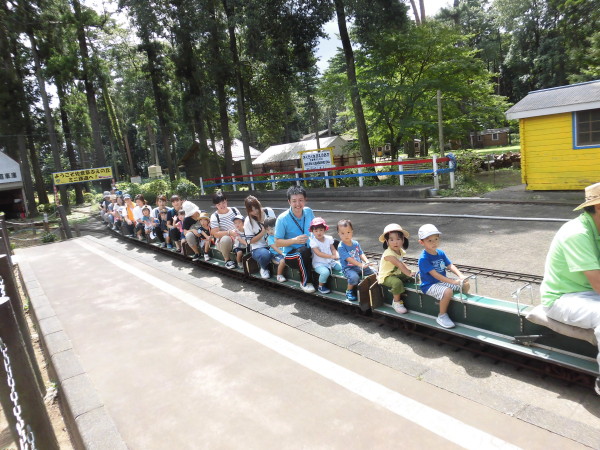 まずは、みんなでミニSLに乗りました。途中にはヤギや馬などの動物を見ることができて、「あっ、何かいるよ!」とみんな大興奮でした。