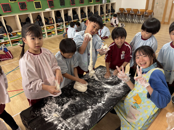 「伸びた!」「早く食べたい!」と興味津々でした。