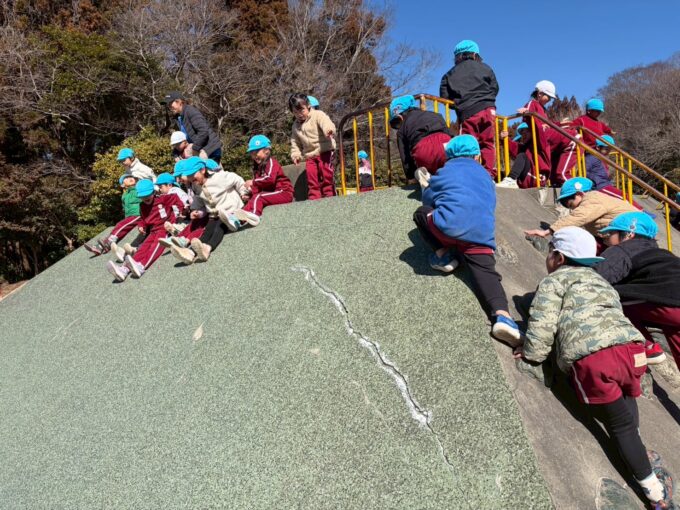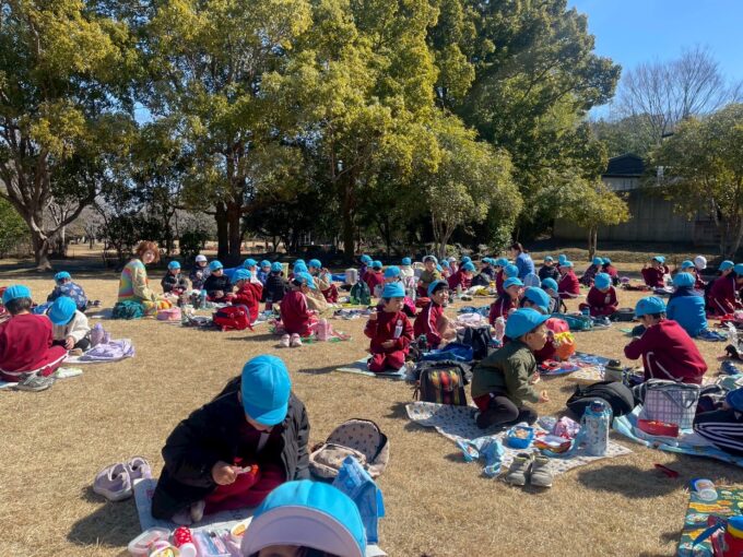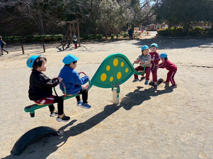 先生や友だちと遊び、また新しい思い出ができた良い日になりました。年中組で過ごす日も残りわずかです。園生活でもたくさん遊びながら、自信をもって年長に進級できるように見守っていきたいです。