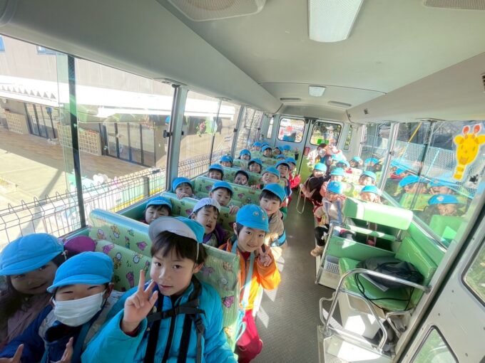 今日は子どもたちがずっと楽しみにしていた上座公園に遠足へ行きました。バスの中から「早くターザンしたいな」「お弁当○○入っているんだよ」などたくさん友だちとの会話が盛り上がっていました。
