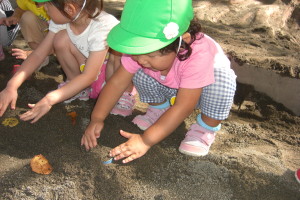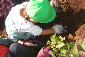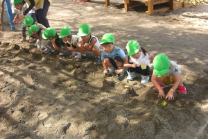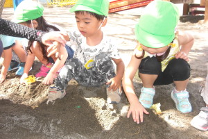 この日のために、今週はお芋掘りの練習を幼稚園の砂場で秘かにしていたおひさまさん。