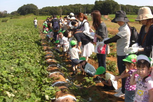 秋晴れの中、おひさまくらぶの”お芋掘り親子遠足”に行ってきました。