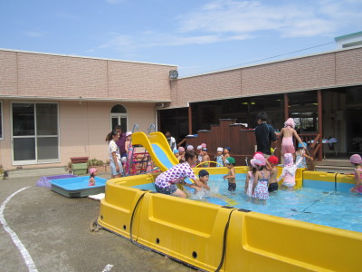 1日目と2日目は今年最後のプールに入りました。お天気にも恵まれお友だちと水をかけたり、すべり台を滑ったり、水鉄砲を使って水をかけ合って楽しく過ごすことができました。