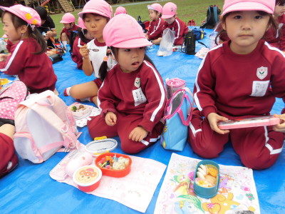 早速ブルーシートの上でお弁当を広げ、お友だちと仲良く食べることができました。