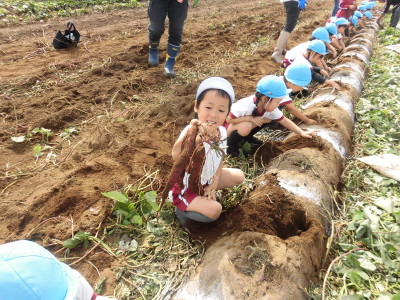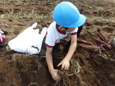 畑に着くと、一生懸命に土を掘っていました。少しお芋が見えると、「あった!」と大興奮。