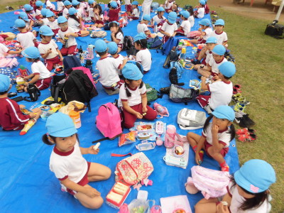 頑張って掘った後は、みんなでおいしいお弁当とおやつを食べました。