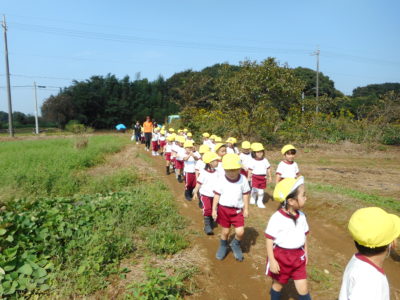 今日は良いお天気の中、年中組 ばら、ゆり組でお芋掘り遠足に行ってきました。