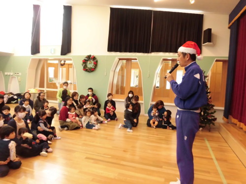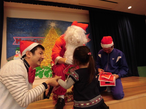 サンタさんを目の前に思わず固まってしまう子もいましたが、一人ひとりサンタさんからプレゼントをもらい、『ありがとう!』とお礼もきちんと言うことができました。
