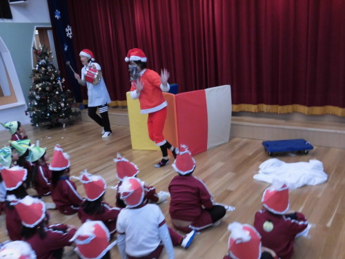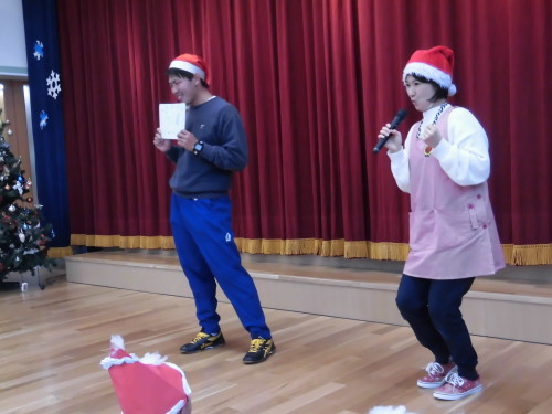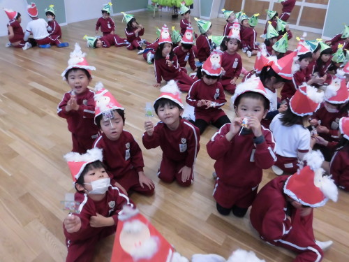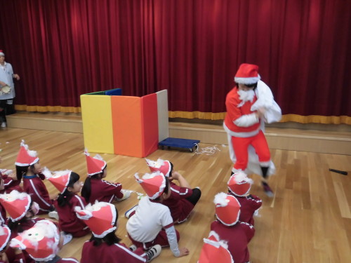途中、『あわてんぼうのサンタクロース』の音楽に合わせて、おっちょこちょいなサンタさんの登場もあり、大盛り上がりでクリスマス会が進んでいきました。