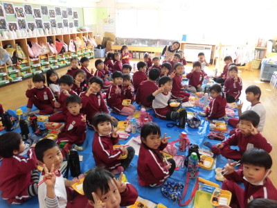 給食は3学年合同の異年齢交流を行い、大満足の一日となりました。