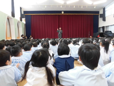 園長先生のお話では、冬休みのお約束を聞きました。