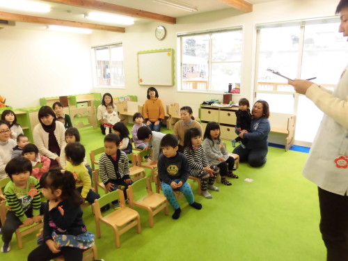 今日はなかよしくらぶエンジェルの『きらきらチーム』を行いました。朝から思わぬ雪に見舞われましたが、今日も元気に登園してくれました。