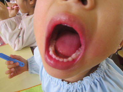 バイキンが残っているところだよ」と教えていただき、手鏡を見ながら真剣に磨くことが