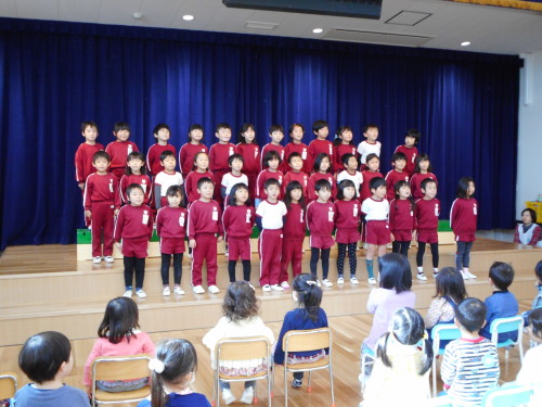 朝の活動後、年長組のもも組さん『にじのむこうに』の歌を披露してくれました。