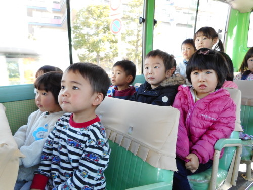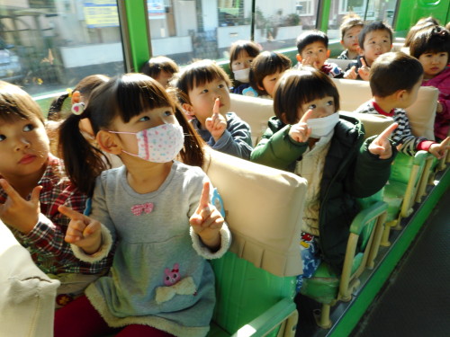 初めて一人でバスに乗れたことが自信になったのか、幼稚園に戻ってきたときの子どもたちの表情がたくましくなったように見えました。バスの中での子どもたちの姿が、普段お母さんのそばで参加している姿とはまた違い、子どもたちの新しい一面を見ることができ、とても楽しい時間になりました。