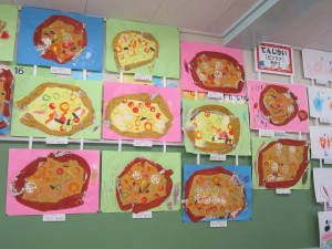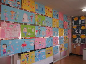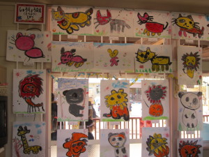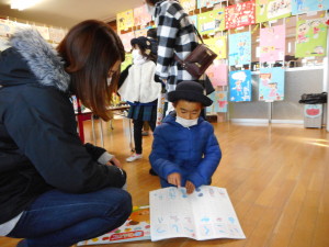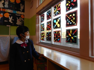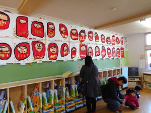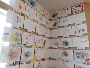 各保育室には、年間を通して取り組んできた、絵や紙粘土が飾られました。一生懸命おうちの方に作品の説明をして、「上手だね!」と褒められると、とてもうれしそうな顔を見せてくれました。作品を通しておうちの方と、一年間の成長を感じることができました。