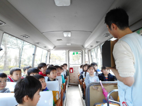 今日のお散歩をとおして4月の入園後の、バスに乗って幼稚園に登園することへの期待が膨らんだように思います。