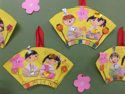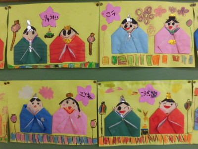 どの学年もこの日に向けておひなさま制作を行いました。表情に工夫して顔を描いたり、難しい折り方に