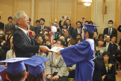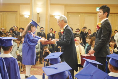 呼名されてから元気よく返事をし、園長先生から一人ずつ卒園証書を受け取りました。どのお友だちも真剣な表情で、立派な姿を見せてくれました。