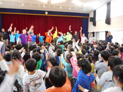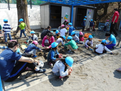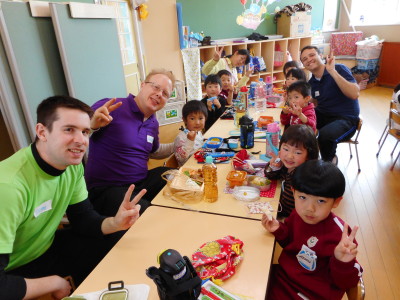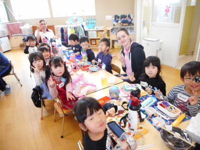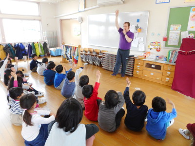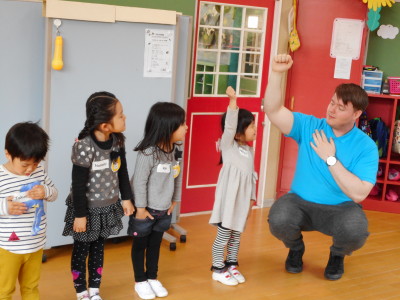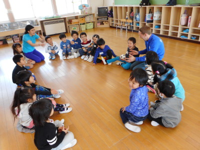 英語のうたを歌ったり、踊ったり、ゲームをしたりして楽しく過ごしました。優しい英語の先生たちに大喜びの子どもたち。普段から外国の先生とふれあっている、子どもたちは恥ずかしがったりすることもなく、いつも以上に進んで英語の先生たちとふれあい、英語あそびを楽しむことができました。