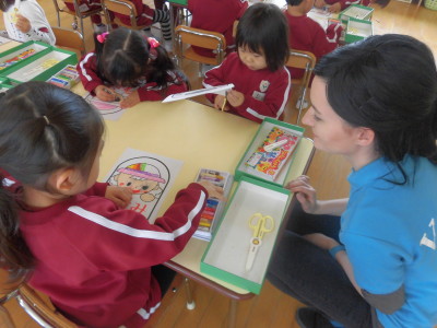年中組の新入園児さんも、みんなと一緒に「おとうばんカード」作り。