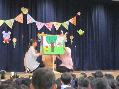 各学年から歌のプレゼントをしたり、大型紙芝居をみたりと楽しい時間を過ごしました。