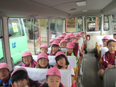 気持ちの良いお天気の中、年少2組さんみんなでお芋掘り遠足に行ってきました。草ぶえの丘に向かうバスの中では「大きなお芋掘るよ!」「いっぱい掘るんだ!」と張り切っていた子どもたち。