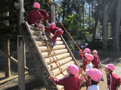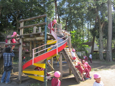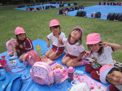 たくさんお芋掘っておなかもペコペコ。広場でおいしいお弁当やおやつを食べて、大型遊具で遊んだり、まつぼっくりを拾ったりして、楽しい時間を過ごすことができました。