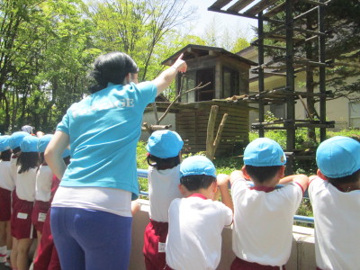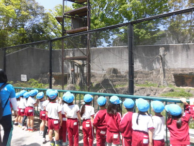 レッサーパンダが木を登っているところを見て「落ちなくてすごいね」とお友達と話したり、踊ってくれたチンパンジーやつなわたりをするテナガザルに拍手や声援を送ったり、楽しく過ごすことができました。
