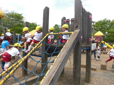 幼稚園にない遊具がたくさんあり、「どうやって遊んだらいいの?」「もう1回やる!」