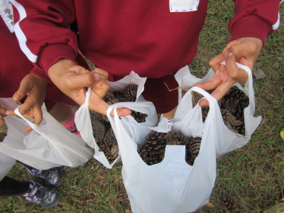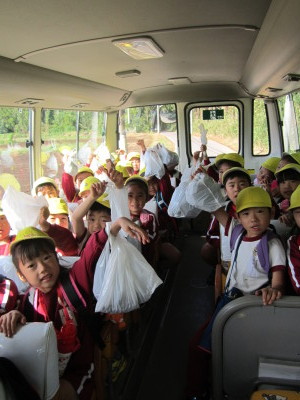 帰りのバスの中では、袋いっぱいに入った木の実のおみやげを嬉しそうに見せてくれました。