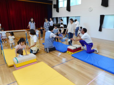初めての体操の活動に、少し疲れも見られたりしましたが、最後まで張り切って参加する姿もたくさん見られました。