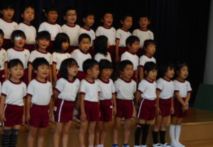 さらに今日は後半の部に、年長組『うめ組』のお友だちがお歌の発表で『にじのむこうに』にを歌ってくれました。