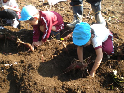 面白い形や、自分の顔よりも大きいお芋など自分のお気に入りを見つけ、大満足でした。