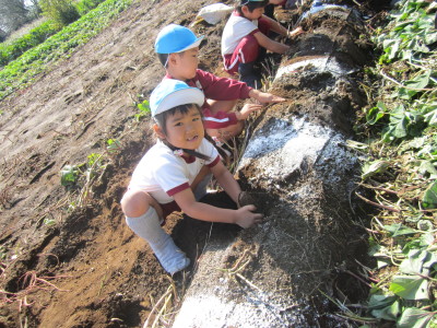 「大きいお芋掘るぞー!!」と気合の入る子どもたちでした。