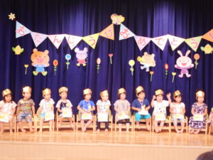 一人ずつお名前を呼ばれ、元気にお返事をして園長先生からお誕生日カードをもらいました。