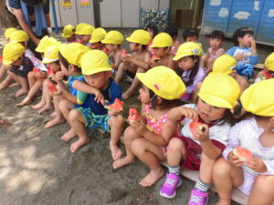 甘いすいかをおなかいっぱい食べて、大満足の様子の子どもたちでした。