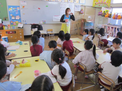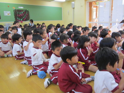 28日に年長組、30日に年中組が歯磨き指導を受けました。