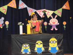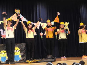 先生たちからの出し物は、『ミニオンズマジックショー』。ミニオンに扮した先生たちがいろいろなマジックを披露してくれました。
