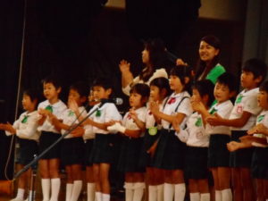 子どもたちは、『手のひらを太陽に』と『にじのむこうに』の2曲合唱を発表しました。