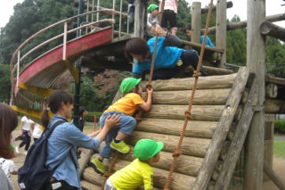 掘り終わった後は、お弁当を食べました。外でみんなで食べるお弁当はいつも以上においしく感じたようです。 アスレチックでもたくさん遊び、笑顔あふれる1日になりました。