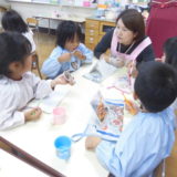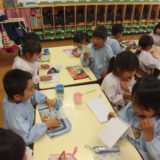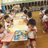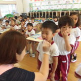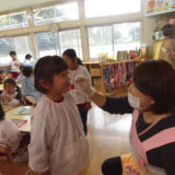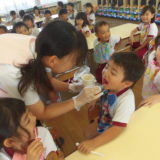 12日(木)に年中組、20日(金)に年長組が歯科衛生士から歯磨き指導を受けました。