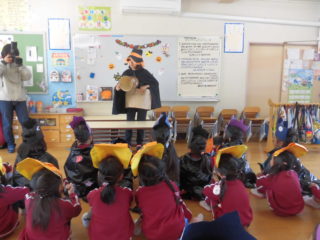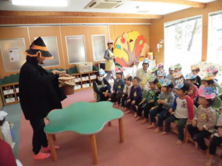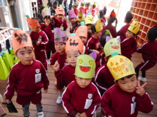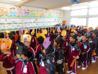 今日はハロウィンです。幼稚園では朝から音楽が流れていて、子どもたちの期待が高まっています。