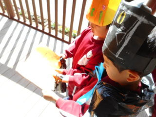 自分で作ったお面やマントをつけたら、ハロウィンパーティーの始まりです!