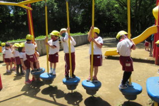 公園に着くと、幼稚園にはない遊具を見つけて、お友だちと一緒に滑り台を滑ったり、