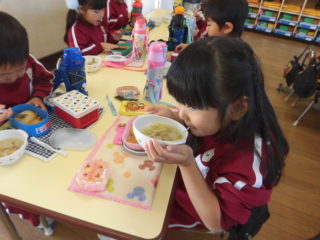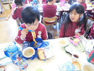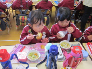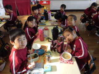 美味しそうな匂いに誘われて「早く食べたいな!」と話していました。