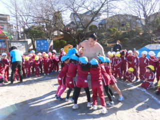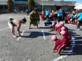 あっという間の時間で、子どもたちももっともっとおすもうさんと一緒にいたいと、さよならをするのを惜しんでいましたが、最後は「また来年もきてねぇ~~!!」と、みんなで元気にお見送りしました。