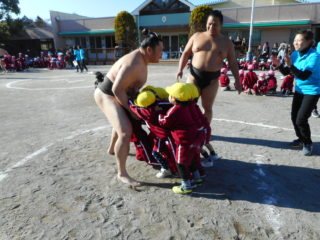 おすもうさんがくることをとっても楽しみにしていた子どもたち。大きなおすもうさんをみて、大興奮でした。