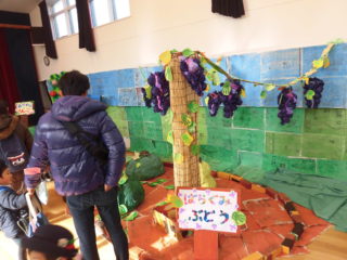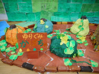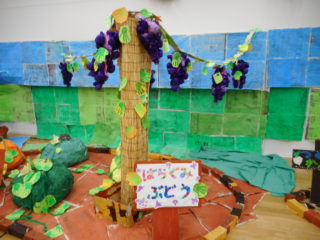 年中さんは、「田んぼ」「りんご」「かぼちゃ」「ぶどう」を作りました。