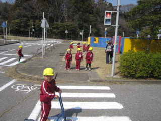 交通公園では、スクーターやなわとび電車、すべり台でお友だちと仲良く遊びました。